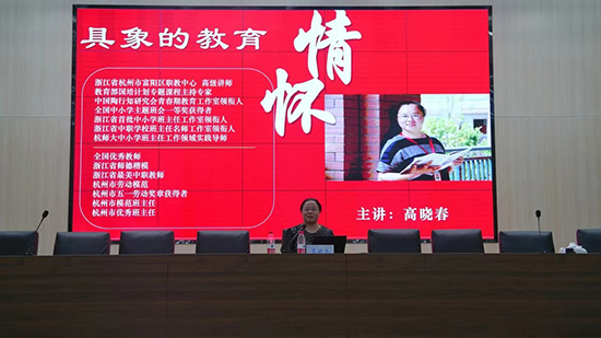 25日下午,杭州富陽(yáng)區(qū)職教中心高曉春老師帶來《具象的教育情懷》專題講座。高老師有24年職教經(jīng)驗(yàn)、23年班主任經(jīng)歷,曾獲浙江省師德楷模等多項(xiàng)榮譽(yù),她從孜孜不倦的激情、依依不舍的教育戀情、念念不忘的教育深情,楚楚不凡的教育熱情四個(gè)方面,結(jié)合跑操訓(xùn)練、畢業(yè)旅行等具體案例,闡述教育真諦與班主任所需智慧,分享走進(jìn)學(xué)生、引導(dǎo)學(xué)生的可行經(jīng)驗(yàn)。此次講座傳達(dá)了唯有熱愛、專注與期待,才能堅(jiān)守班主任崗位、掌握工作技巧、見證學(xué)生成長(zhǎng)的教育感悟,激勵(lì)在座教師踐行教育情懷,努力成為“有德、有料、有效、有趣”的教師,守護(hù)學(xué)生成長(zhǎng)。