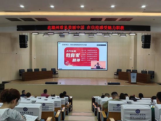 8月26日,全體教職工在學(xué)校報(bào)告廳觀看了湖州市教育局組織的2025年市屬學(xué)校(單位)教師暑期師德專題教育集中學(xué)習(xí)視頻直播。會(huì)議由市委教育工委專職副書記胡衛(wèi)東主持。湖州市教育局黨委書記、局長(zhǎng)黃建豐以《涵養(yǎng)教育家精神,打造專業(yè)化高素質(zhì)教師隊(duì)伍》為題作動(dòng)員講話,從傳道、授業(yè)、鉆術(shù)、爭(zhēng)譽(yù)和自律五維度闡述相關(guān)指引并強(qiáng)調(diào)教育家精神的融入與落實(shí);隨后,南通市海門實(shí)驗(yàn)學(xué)校張馗、浙江省教師教育質(zhì)量監(jiān)控中心徐建華分別作專題報(bào)告與講座,分享班級(jí)管理方法、解讀教育家精神等;湖州藝術(shù)與設(shè)計(jì)學(xué)校王樓天天也結(jié)合自身班主任經(jīng)驗(yàn),以幽默語(yǔ)言分享育人智慧,為我們提供了切實(shí)指導(dǎo)。