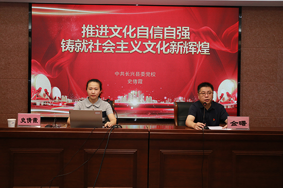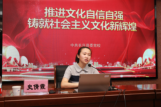 8月29日,長(zhǎng)興開大教師進(jìn)修學(xué)院黨總支組織開展8月份主題黨日活動(dòng),特邀中共長(zhǎng)興縣委黨校史倩霞老師作專題黨課輔導(dǎo),主題為《推進(jìn)文化自信自強(qiáng),鑄就社會(huì)主義文化新輝煌》。學(xué)院全體黨員參加學(xué)習(xí)。