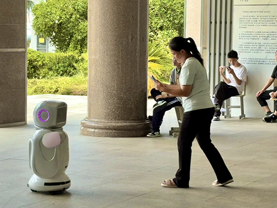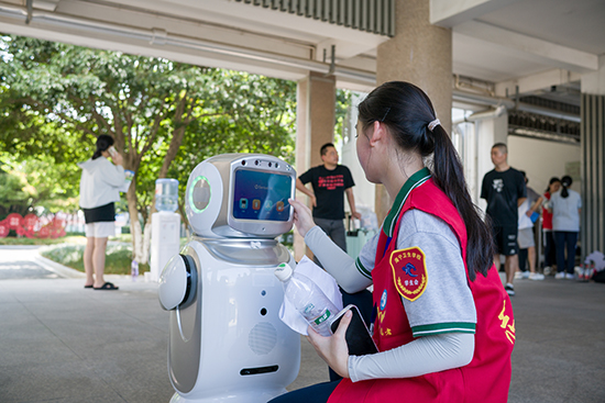 志愿者臉上滿是熱情的笑容,自然地接過新生的行李,大廳里還有可愛的智能機(jī)器人擺動著手臂說著歡迎詞和報道流程,迎接他們的到來。隨后志愿者們帶領(lǐng)新生走教室、寢室,參觀校園,接過你手中的行囊,從此我們就是一家人。校園里各處的橫幅和浪浪山小妖怪,讓新生感受到了校園的親切和歡迎,讓大家倍感溫暖。
