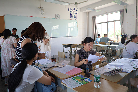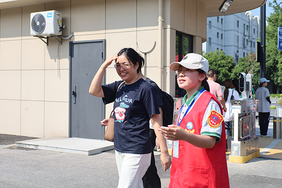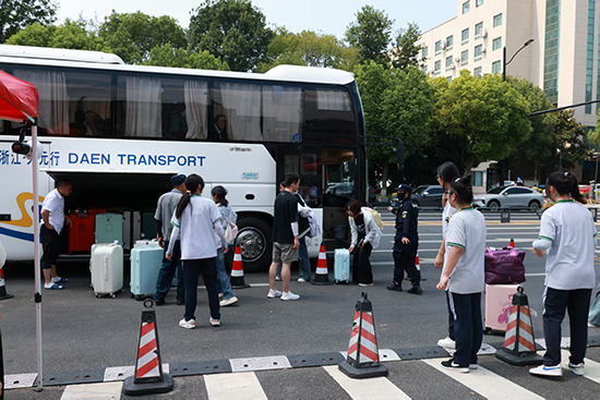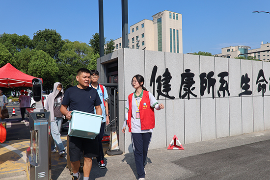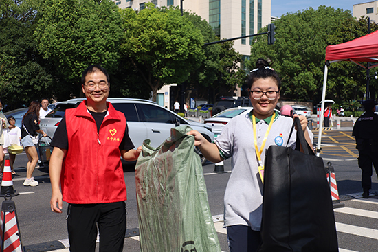 早上七時的校園,已有了忙碌的身影:校領(lǐng)導(dǎo)統(tǒng)籌安排,全校老師與黨員干部整裝待發(fā),各項(xiàng)準(zhǔn)備工作就緒。校門口,志愿者和老師們忙著幫新生搬運(yùn)行李,不過片刻,汗水已浸濕了衣領(lǐng),臉上滿是辛勞卻依舊熱情的模樣。