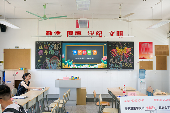 當(dāng)新生踏入校園,最先遇見的不僅是師長同學(xué)。還有這特別的歡迎儀式——“勤學(xué)、厚德、守紀(jì)、文明”八字校規(guī)里藏著每位新生的名字。這是海寧衛(wèi)生學(xué)校的期許,更是新生們要踐行的青春誓言。新生們紛紛尋找自己的名字并拍照打卡,相信心中已暗暗種下不負(fù)青春的決定。