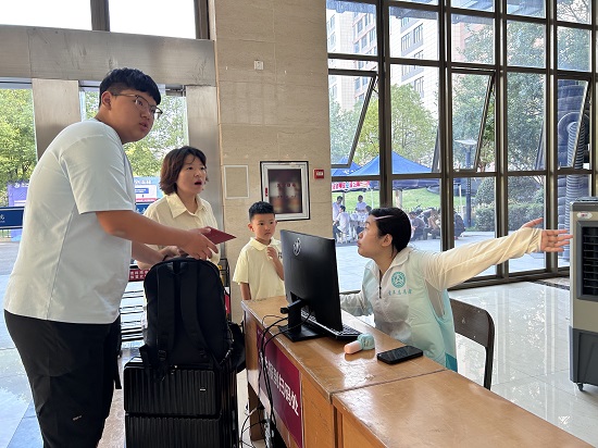 “從下車到完成報到,志愿者一直幫我提行李,還詳細(xì)介紹了校園布局,特別貼心!”來自東陽的新生王同學(xué)感慨道。
