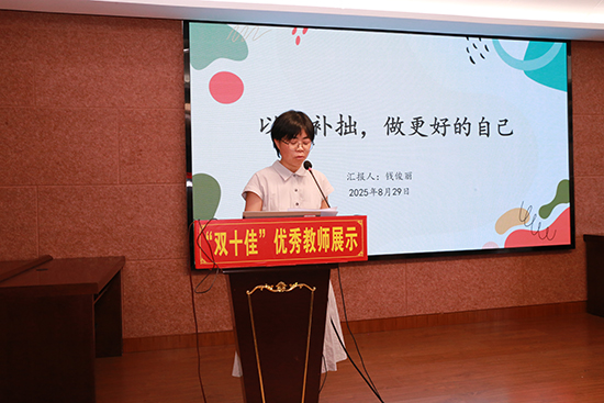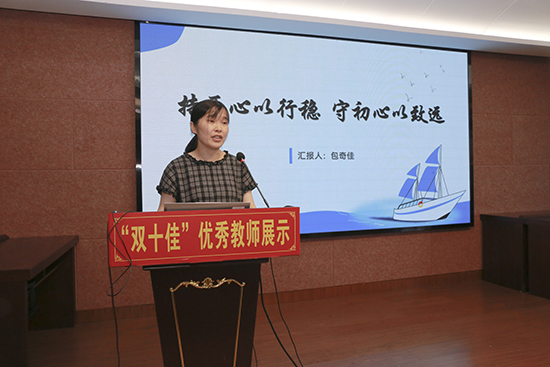 九位“雙十佳”優(yōu)秀教師代表中既有校級領(lǐng)導(dǎo),也有中層干部,更有一線教師。他們依次登臺,作了精彩紛呈的先進(jìn)事跡分享。他們不僅展現(xiàn)出卓越的工作智慧與教育溫度,更傳遞出砥礪前行、躬耕教壇的榜樣力量。