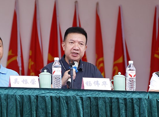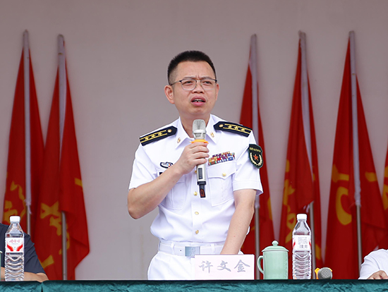 云和縣委常委、人武部政委許文金宣布云和職技校2025級新生軍訓(xùn)正式開營。