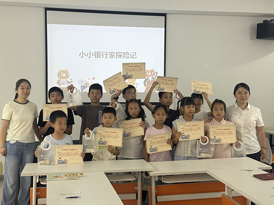 除了文化與藝術(shù)體驗,采荷街道社區(qū)學(xué)校還聯(lián)動雙菱社區(qū),特別開展“小小銀行家”職業(yè)體驗活動。社區(qū)工作人員與志愿者化身“銀行導(dǎo)師”,用通俗易懂的語言講解貨幣起源、辨別真假幣、儲蓄理財?shù)然A(chǔ)金融知識,并模擬銀行柜臺場景,讓青少年輪流扮演“柜員”與“客戶”,體驗取號、辦理存取款業(yè)務(wù)等流程。孩子們認(rèn)真學(xué)習(xí)點鈔技巧、填寫業(yè)務(wù)單據(jù),在角色扮演中不僅掌握了基礎(chǔ)金融常識,更培養(yǎng)了理性消費與財富管理的意識。