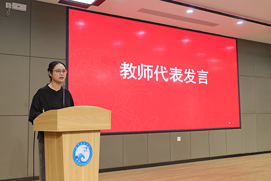 教師代表沈苞潔老師溫情寄語,在陪伴和見證同學(xué)們成長和蛻變,以閃耀賽場的同學(xué)為例,勉勵同學(xué)們堅定信念,不忘初心,勇于挑戰(zhàn),珍惜過程,善待時光。