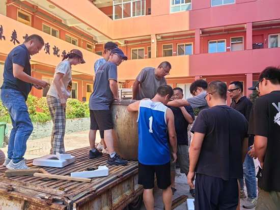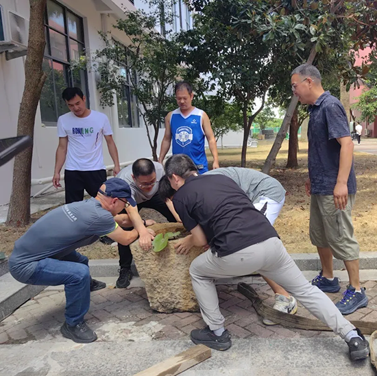 搬運現(xiàn)場,行政干部們二話不說,挽起袖子一起發(fā)力,或是扶穩(wěn)缸身,或是清理安置點。這里,沒有命令,沒有指派,只有默契與共識——這口缸,必須安穩(wěn)落地,就像龍職的精神,必須代代相傳。缸雖重,情更重。它不再只是一口缸,而是“龍職四見精神”的象征:見行動——人人伸一把手;見速度——迅速響應(yīng)齊上陣;見成效——安全運抵新家;見品質(zhì)——安置得端莊穩(wěn)妥。