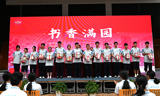 校領(lǐng)導(dǎo) “授書進班級” 環(huán)節(jié)溫馨開啟。領(lǐng)導(dǎo)們將精心挑選的書籍遞到學(xué)生代表手中。一本本圖書,承載著學(xué)校對學(xué)生的殷切期望 —— 希望同學(xué)們在新學(xué)期多讀書、讀好書,在書香中拓寬視野,涵養(yǎng)品格,讓知識成為逐夢遠方的有力支撐。?