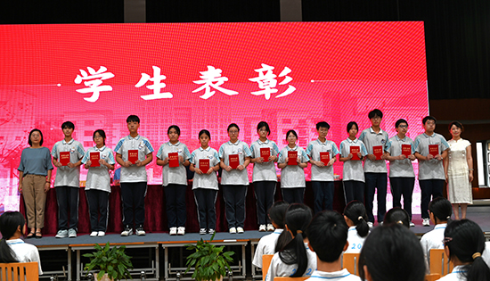 校領(lǐng)導(dǎo)分別為“新荷之星”和“青荷標(biāo)兵”的學(xué)生頒獎。