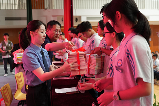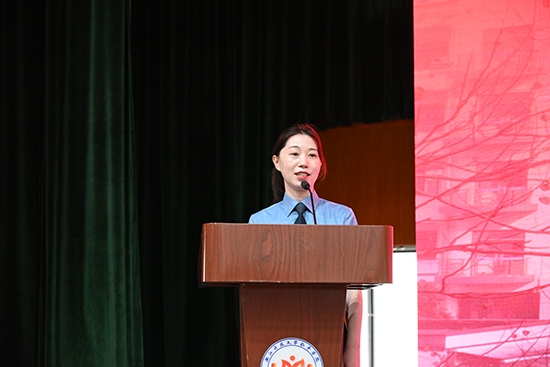 隨后,法制副校長張爽發(fā)表講話。她結(jié)合校園安全與青少年法治教育,用生動的案例、通俗的語言,為全體師生普及法律知識,提醒同學(xué)們要增強法治意識,自覺遵守校規(guī)校紀(jì),學(xué)會保護自己,同時鼓勵大家樹立正確的價值觀,在法治的護航下健康成長、安心學(xué)習(xí)。