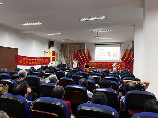8月28日下午,諸暨市楓橋鎮(zhèn)社區(qū)教育學(xué)校連同諸暨市第二人民醫(yī)院中醫(yī)科副主任鐘強、預(yù)防保健科孟建鋒來到楓橋鎮(zhèn)永安新村,在文化禮堂內(nèi)對老年人進(jìn)行健康科普。