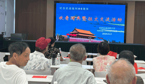 9月3日上午,紹興市柯橋區(qū)柯橋街道退教分會(huì)在柯橋成人文化技術(shù)學(xué)校大教室,舉行“紀(jì)念中國(guó)人民抗日戰(zhàn)爭(zhēng)暨世界反法西斯戰(zhàn)勝勝利80周年”主題教育活動(dòng),20多位退休教師參加?;顒?dòng)的主要內(nèi)容是收看天安門廣場(chǎng)盛大閱兵現(xiàn)場(chǎng)直播及紀(jì)念抗戰(zhàn)勝利80周年征文交流。