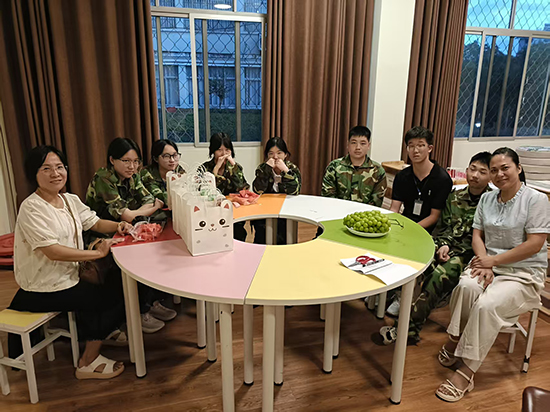活動現(xiàn)場,學(xué)校招生老師們不僅為學(xué)生精心準(zhǔn)備了水果、禮品等,更以成長導(dǎo)師的身份,與同學(xué)們圍坐交流、親切暢談。交流過程中,老師們圍繞學(xué)生最關(guān)心的話題精準(zhǔn)發(fā)力:針對正在進(jìn)行的軍訓(xùn),傾聽學(xué)子們的難忘經(jīng)歷與感悟,分享實用的體能恢復(fù)與心態(tài)調(diào)節(jié)技巧;聚焦校園日常,細(xì)致講解課程安排、技能訓(xùn)練、校園安全等事項,幫學(xué)生掃清環(huán)境陌生感;談及食堂與寢室這兩個生活主陣地,老師們耐心詢問飲食口味偏好、住宿適應(yīng)情況,現(xiàn)場記錄學(xué)生提出的建議,并及時反饋協(xié)調(diào);尤其針對心理健康方面,通過輕松的對話排查學(xué)生的焦慮情緒,傳授情緒管理小方法,鼓勵大家遇到困惑時主動溝通,讓異鄉(xiāng)學(xué)子感受到家一般的溫暖。