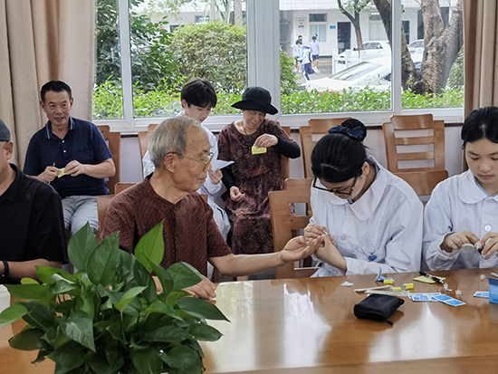 鍛煉技能,服務(wù)老師。教師節(jié)當(dāng)天,寧波東錢湖旅游學(xué)校24護(hù)理中高班的同學(xué)們發(fā)揮專業(yè)所學(xué),為退休教師們“健康體檢”。