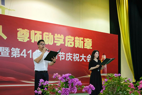 典禮在莊嚴(yán)熱烈的氣氛中拉開帷幕。主持人王含楚、徐亮首先介紹了出席活動的學(xué)校領(lǐng)導(dǎo),包括校黨委書記周潔人、校長劉柏炎、副校長王偉鑫、副校長壽曉峰等校級領(lǐng)導(dǎo)及各學(xué)部、處室負(fù)責(zé)人。