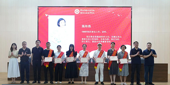 獲獎(jiǎng)教師們依次上臺接受表彰,校領(lǐng)導(dǎo)們?yōu)楂@獎(jiǎng)教師頒發(fā)獎(jiǎng)狀及榮譽(yù)證書,以肯定他們對教育事業(yè)的辛勤付出。