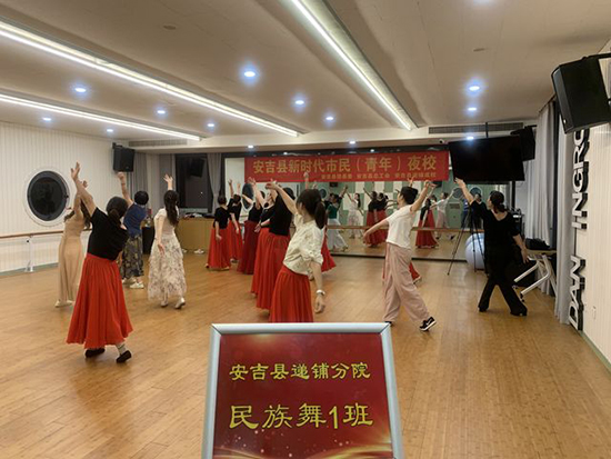 9月14日晚,安吉縣社區(qū)教育學(xué)院遞鋪分院的舞蹈教室內(nèi)燈火通明,樂聲悠揚(yáng)。31位來自不同行業(yè)的學(xué)員齊聚一堂,在專業(yè)舞蹈老師潘虹的帶領(lǐng)下,沉浸于一場精彩紛呈的民族舞教學(xué)體驗之中。