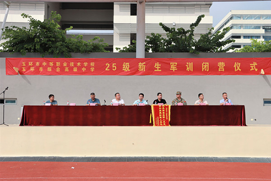 9月13日上午,玉環(huán)市中等職業(yè)技術學校、玉環(huán)市綜合高級中學2025級新生軍訓閉營儀式在校田徑場舉行。市人武部軍事科科長劉季,校黨總支書記張昌森,校長吳德章,楚門鎮(zhèn)人武部副部長趙冰峰,副校長顏申君、陳順宇、金松、楊帆等出席儀式,2000余名師生及教官共同見證了這一莊嚴時刻。