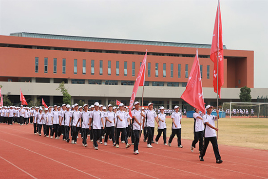 儀式在雄壯的國歌聲中拉開帷幕。由教官組成的護旗隊邁著鏗鏘步伐護送國旗入場,全體師生肅立注目,五星紅旗冉冉升起。