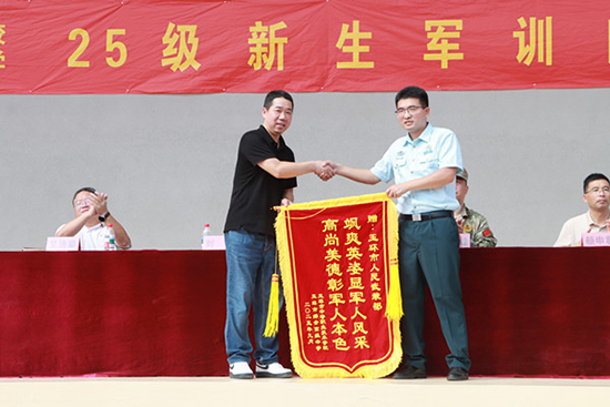 展示結束后,學校向劉季贈送錦旗,感謝玉環(huán)市人武部對學校軍訓工作的支持和幫助。