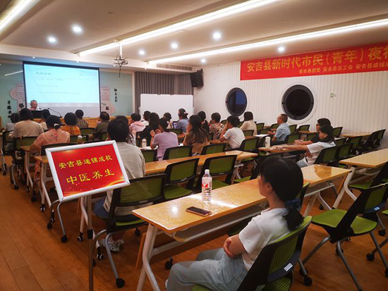 9月18日晚,安吉縣社區(qū)教育學(xué)院遞鋪分院舉辦了一場(chǎng)特殊的中醫(yī)養(yǎng)生課程。46位中醫(yī)愛(ài)好者齊聚一堂,聆聽(tīng)湖州市名醫(yī)、安吉縣中醫(yī)院中醫(yī)專(zhuān)家丁憲春醫(yī)生的精彩講授。
