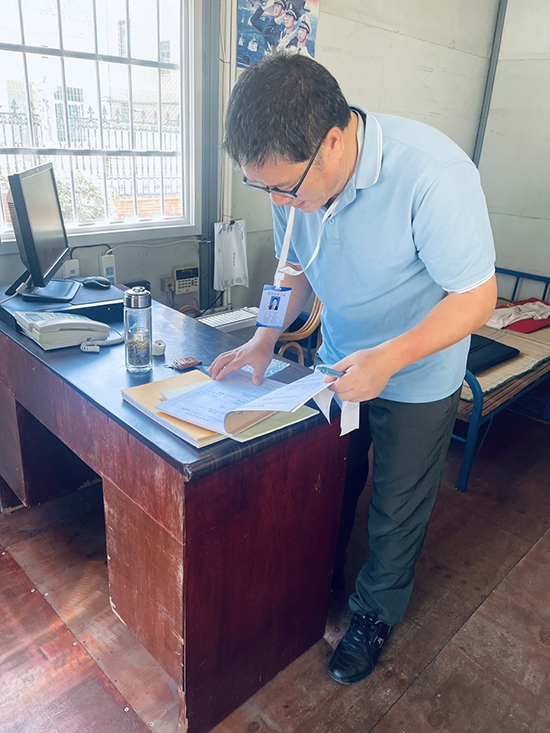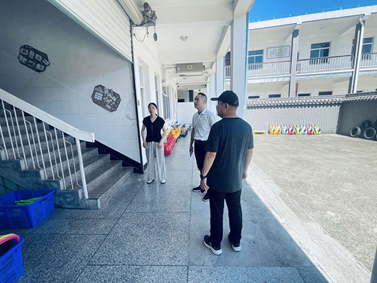 來到旺妙幼教點(diǎn),在幼教點(diǎn)負(fù)責(zé)人金綠揚(yáng)的引領(lǐng)下查看警務(wù)室,室內(nèi)器械物品擺放有序、各類記錄本登記完整,保安能熟練回放與操作報警鍵。走進(jìn)各園室,只見活動室內(nèi)各種玩具按不同年齡組分別擺放,活動場地整潔。俞淦來到二樓午睡室,向金綠揚(yáng)問詢天氣炎熱下,空調(diào)使用及窗簾遮光情況,金綠揚(yáng)一一解答,確保幼兒們安心午睡。俞淦對教學(xué)樓后墻山體護(hù)坡以及與村部大樓連接提出了建議,要求金綠揚(yáng)新到幼教點(diǎn)負(fù)責(zé),多與前任聯(lián)系,主動與所在村大干溪村的領(lǐng)導(dǎo)協(xié)調(diào),確保校園安全,讓家長放心。隨后一起走進(jìn)全堂幼教點(diǎn)、洄村幼教點(diǎn),向金綠美、駱紅環(huán)兩位負(fù)責(zé)人問詢開學(xué)報名與幼兒情況,實(shí)地踏看了園舍。俞淦建議兩位新負(fù)責(zé)人要盡快適應(yīng)新環(huán)境,多與所在村領(lǐng)導(dǎo)聯(lián)系,盡量取得他們的支持與配合,開展工作要細(xì)心,確保幼兒在園生活好。