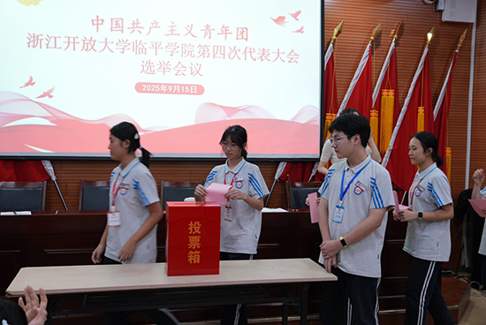 共青團(tuán)浙江開放大學(xué)臨平學(xué)院第四次代表大會在雄壯激昂的《中國共青團(tuán)團(tuán)歌》聲中勝利閉幕。