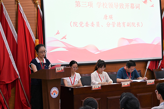 院黨委委員、分管副院長唐瑛致開幕詞,唐瑛副院長向與會人員表示熱烈的歡迎和衷心的感謝,對臨平學(xué)院青年們的努力付出表示肯定,希望新一屆委員會成員能夠以飽滿的政治熱情、認(rèn)真負(fù)責(zé)的工作態(tài)度,不辜負(fù)廣大團(tuán)員青年的重托,砥礪前行,并預(yù)祝大會圓滿成功。