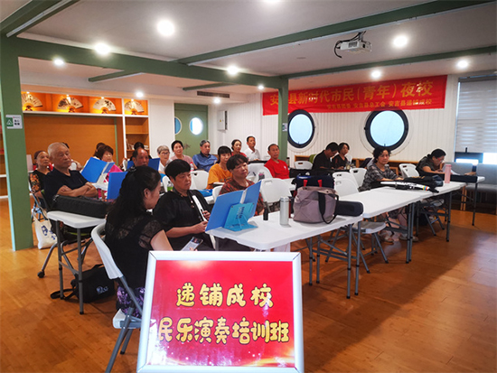 活動(dòng)現(xiàn)場(chǎng),遞鋪分院特邀的民樂(lè)教師先從曲目節(jié)奏、樂(lè)器配合等基礎(chǔ)要點(diǎn)入手,逐句拆解演奏技巧,再通過(guò)分組練習(xí)、整體合排的方式,幫助學(xué)員攻克演奏難點(diǎn)。短短半天時(shí)間,學(xué)員們便熟練掌握了《茉莉花》的合奏技巧,悠揚(yáng)的旋律在文體中心內(nèi)反復(fù)回蕩,引得不少路過(guò)的居民駐足聆聽(tīng)。