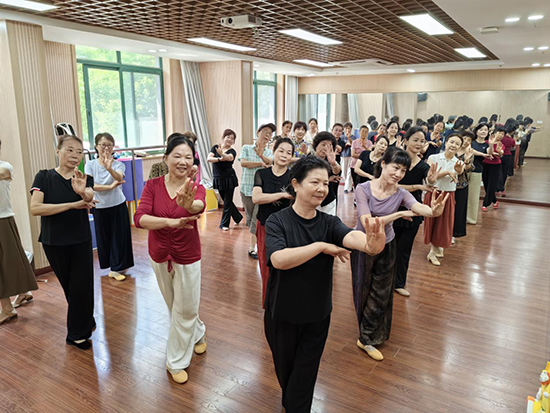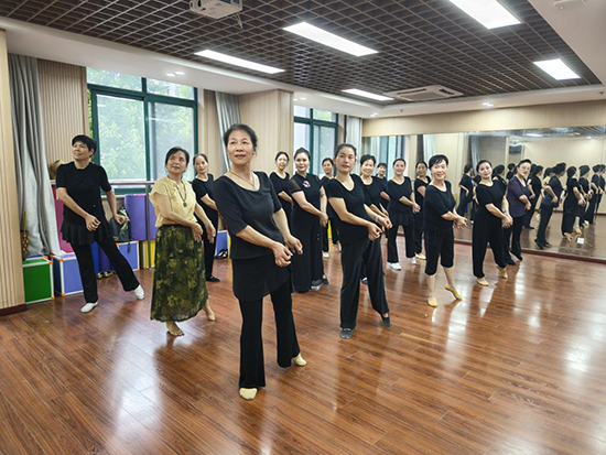 9月15日上午9:00還未到,舞蹈室內(nèi)已經(jīng)聚滿了舞蹈初級(jí)班的學(xué)員。不少人提前換好舞蹈鞋,在鏡子前認(rèn)真練習(xí)動(dòng)作。“假期一結(jié)束就盼著開學(xué),和老姐妹一起跳舞心情特別好!”73歲的學(xué)員金阿姨笑著說(shuō)。授課老師吳宇萍細(xì)致帶領(lǐng)大家進(jìn)行基礎(chǔ)熱身,學(xué)員們神情專注,跟隨著節(jié)拍反復(fù)練習(xí),教室里洋溢著活力與歡笑。
