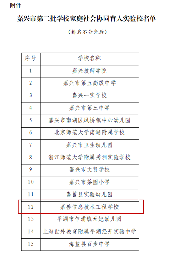 近日,嘉興市教育局公布第二批學(xué)校家庭社會協(xié)同育人實(shí)驗(yàn)校名單,嘉善信息技術(shù)工程學(xué)?!短剿?ldquo;四共建二融合一橋梁” 家校社協(xié)同育人新生態(tài):陽光成長指導(dǎo)中心賦能學(xué)生全面發(fā)展》的優(yōu)秀實(shí)踐案例成功入選。