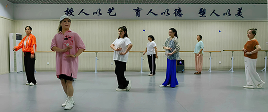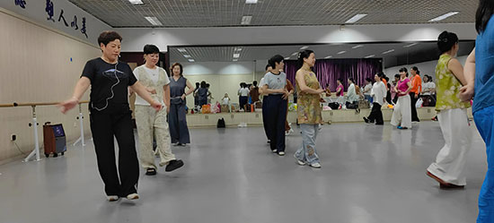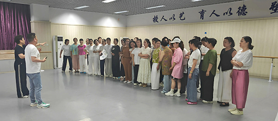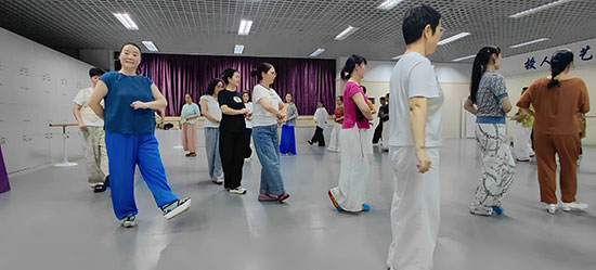 簡短而莊重的開班儀式結束后,兩位老師便馬不停蹄地投入到了緊張而有序的教學中。她們首先帶領學員進行熱身走步,過程中,兩位老師耐心細致,不放過任何一個細節(jié),親自示范步法與手勢,讓學員們能夠準確掌握每一個動作要領。隨后,根據(jù)學員的特點和自身優(yōu)勢,將學員們巧妙地分為花旦和小生組,進行有針對性的教學。在兩位老師的悉心指導下,學員們迅速進入狀態(tài),全神貫注地認真練習,現(xiàn)場學習氛圍濃厚。不一會兒,學員們便轉入了越劇經典劇目《打金枝·闖宮》的排練中。大家各展風采,將越劇的韻味展現(xiàn)得淋漓盡致,現(xiàn)場氣氛熱烈而有序,仿佛一場精彩的越劇盛宴正在徐徐拉開帷幕。