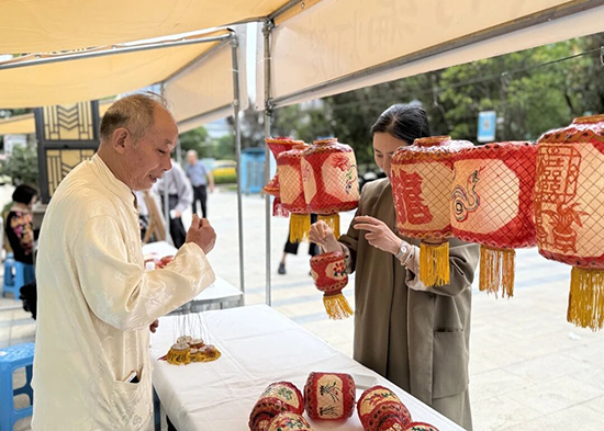 活動伊始,“西陵雅集”非遺集市便人頭攢動,成為最聚人氣的區(qū)域之一。非遺展架上,精巧的核雕、質(zhì)樸的竹編燈籠、絢麗的剪紙、流光溢彩的巖彩琺瑯……十余項特色非遺作品齊齊亮相,無聲地述說著匠心傳承的故事。