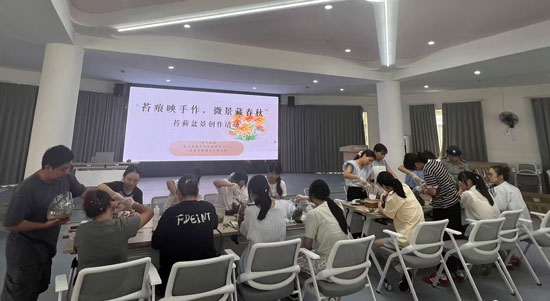 活動(dòng)現(xiàn)場邀請了專業(yè)手工制作師王煌斌進(jìn)行指導(dǎo)教學(xué)。王老師從苔蘚的特性、盆景構(gòu)圖原理、材料搭配技巧等方面進(jìn)行了詳細(xì)講解,并現(xiàn)場演示了苔蘚微景觀的制作步驟。參與者們在老師的指導(dǎo)下,親手將苔蘚、綠植、砂石等材料巧妙組合,創(chuàng)作出一個(gè)個(gè)充滿生機(jī)與意境的微型生態(tài)景觀。