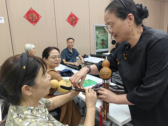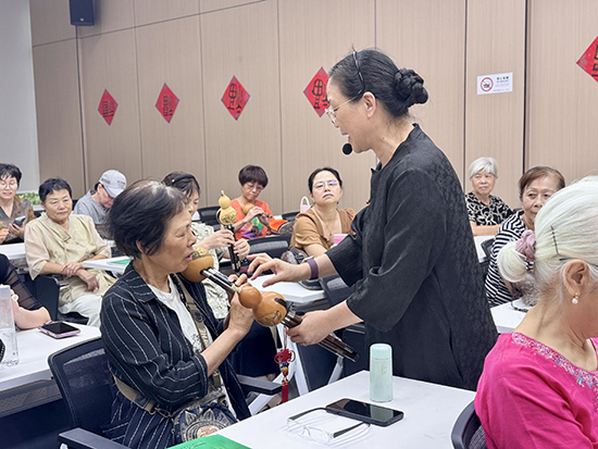 社區(qū)老年學(xué)堂特邀資深葫蘆絲演奏與教育專家孫碧贏老師親授課程。作為中國民族管弦樂學(xué)會認(rèn)證的高級指導(dǎo)教師、浙江省民族管弦樂學(xué)會葫蘆絲巴烏專業(yè)委員會常務(wù)理事,孫老師憑著扎實的教學(xué)功底和豐富的演奏經(jīng)驗,給社區(qū)居民帶來了一堂“零門檻”卻高品質(zhì)的葫蘆絲入門課。