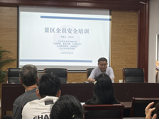 9月23日下午3時,在今年國慶“十一”黃金周到來前夕,由安吉縣大余村文旅專班和安吉縣社區(qū)教育學院天荒坪分院(天荒坪成校)聯(lián)合開展的藏龍百瀑等景區(qū)(酒店)員工全員安全培訓在大溪村村委會三樓會議室舉行。