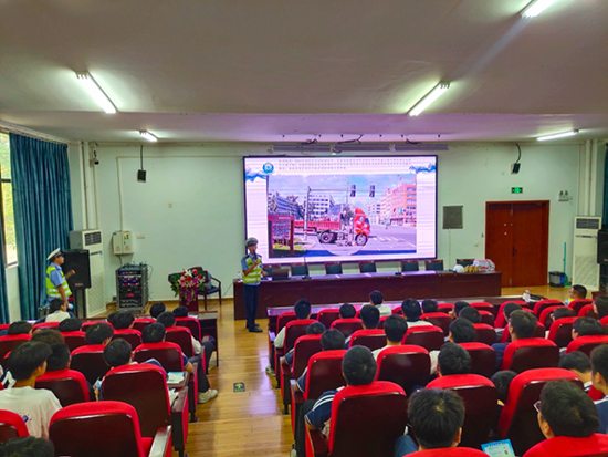 為切實增強學生交通安全意識,營造安全文明的校園周邊環(huán)境,9月23日下午,柳市職業(yè)技術(shù)學校邀請柳市交警中隊來校,為學生構(gòu)建了一堂深入淺出、警教結(jié)合的立體化安全教育課堂。