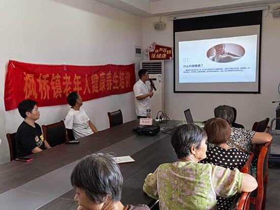 9月18日下午,諸暨市楓橋鎮(zhèn)社區(qū)教育學(xué)校邀請(qǐng)諸暨市第二人民醫(yī)院內(nèi)科副主任醫(yī)師吳誼鋒、中醫(yī)科副主任鐘強(qiáng)走進(jìn)楓橋鎮(zhèn)楓一社區(qū),在文化禮堂內(nèi)對(duì)老年人進(jìn)行養(yǎng)生保健講座。