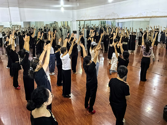 書(shū)法教室內(nèi),墨香彌漫,銀發(fā)學(xué)員們凝神靜氣,在老師的指導(dǎo)下從容運(yùn)筆,一點(diǎn)一劃間盡顯漢字的韻致與人生的沉淀。形體舞班里,伴隨著舒緩優(yōu)美的音樂(lè),學(xué)員們身姿舒展、步履輕盈,在節(jié)奏中找回身體的活力,展現(xiàn)出中老年人特有的優(yōu)雅與從容。而聲樂(lè)班精心排練的《浦沿潮涌》更成為了一道亮麗的風(fēng)景線,這首承載著浦沿精神與文化的歌曲,在銀發(fā)學(xué)員的歌聲中煥發(fā)出別樣生機(jī)。