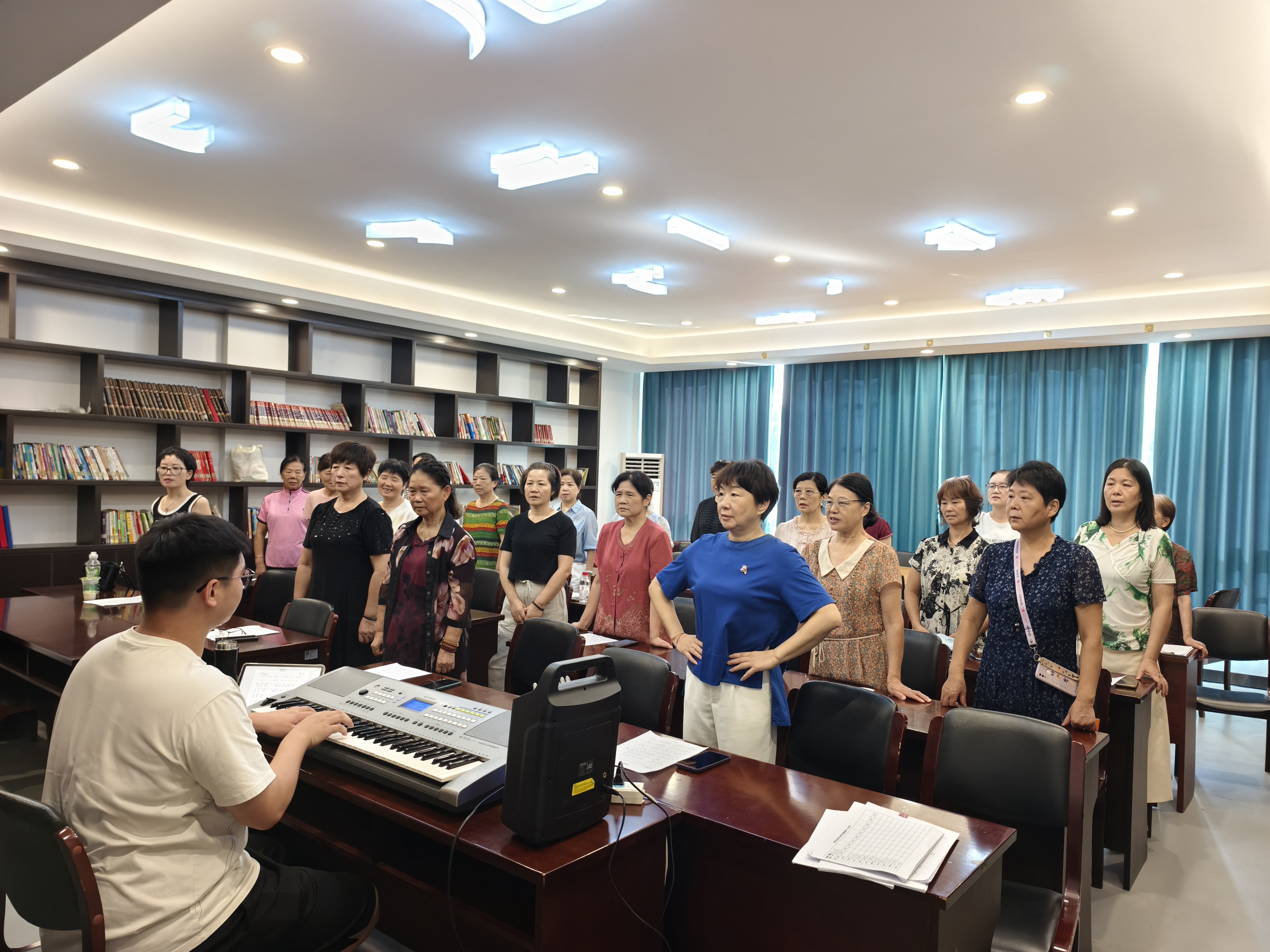 “大地回春,落櫻灑滿希望的步道……”還未走近聲樂班的教室,一陣陣激昂嘹亮的歌聲便已傳來(lái)。教室內(nèi),叔叔阿姨們手持歌譜,在聲樂小蔡老師的指導(dǎo)下,正全情投入地學(xué)唱本學(xué)期的重點(diǎn)曲目——《潮涌浦沿》。這首歌唱出了浦沿街道的發(fā)展變遷,里面的一段家鄉(xiāng)話朗誦“浦沿浪 浦沿浪,鯰魚嘴里撈白條。浦沿浪 浦沿浪,浦師傅手藝呱呱叫……”更是唱出了居民們對(duì)家鄉(xiāng)的深情與自豪。