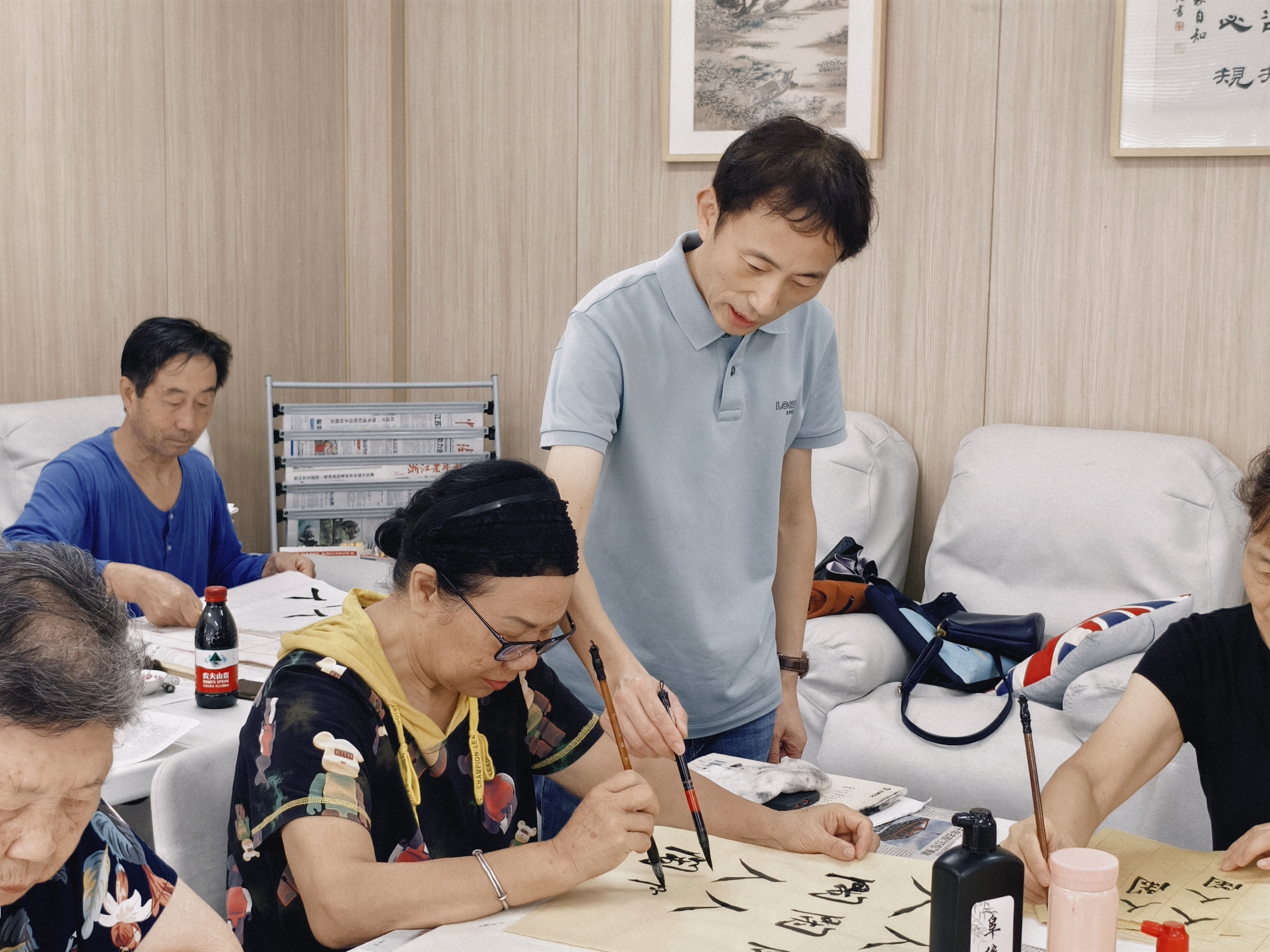 書法教室內(nèi),空氣中彌漫著淡淡的墨香。老人們端坐于桌前,神情專注,聽書法教師畢老師講解行書的筆法精髓。“行書講究‘筆斷意連’,就像咱們說(shuō)話,句子雖有停頓,意思卻要連貫。”畢老師握著毛筆,在宣紙上示范“永字八法”的行書變體,筆尖在紙上游走,橫畫如千里陣云,豎筆似萬(wàn)歲枯藤,轉(zhuǎn)折處提按頓挫間,盡顯行書的靈動(dòng)與流暢。