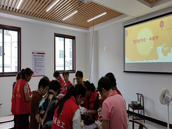 活動(dòng)當(dāng)天,老年學(xué)校的活動(dòng)室內(nèi)歡聲笑語,其樂融融。學(xué)校提前為老人們備好了冰皮粉、豆沙、蓮蓉等多種餡料以及專業(yè)的月餅制作工具。在面點(diǎn)師傅的耐心指導(dǎo)下,老人們興致勃勃地動(dòng)手實(shí)踐,從和面、包餡到壓模成型,每一個(gè)步驟都做得認(rèn)真細(xì)致。大家互相交流著制作技巧,分享著生活中的趣事,看著一個(gè)個(gè)晶瑩剔透、造型精美的冰皮月餅在自己手中誕生,老人們的臉上都洋溢著自豪與喜悅的笑容?;顒?dòng)現(xiàn)場彌漫著香甜的味道,更充滿了溫馨和諧的氣氛。