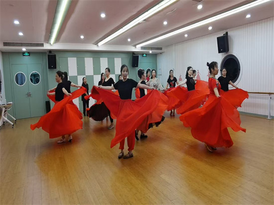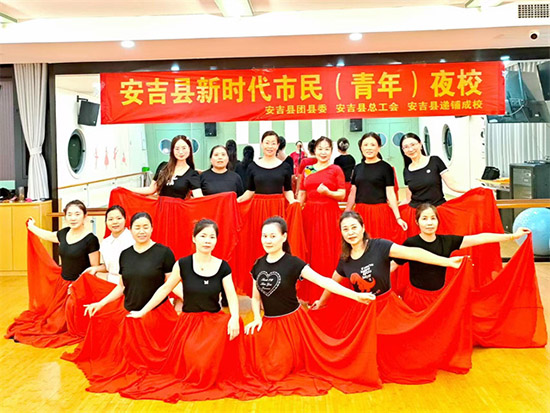 9月28日的夜晚,暑氣已悄然褪去,安吉縣社區(qū)教育學(xué)院遞鋪分院的舞蹈教室里卻暖意融融。伴隨著《我愛你中國》悠揚(yáng)激昂的旋律,二十多位身著輕便舞服的學(xué)員正舒展身姿,用靈動(dòng)的舞步迎接國慶佳節(jié)的到來。