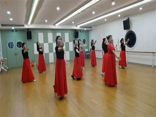 這些學(xué)員來自安吉縣的各個(gè)村鎮(zhèn)與社區(qū),年齡或許有差異,舞蹈基礎(chǔ)也不盡相同,但此刻眼中都閃爍著同樣的專注與熱忱。鏡子前,潘虹老師正逐一把關(guān)動(dòng)作細(xì)節(jié):抬手時(shí)的弧度要再柔和些,轉(zhuǎn)身時(shí)的重心需再穩(wěn)一點(diǎn),連眼神望向遠(yuǎn)方的角度,她都俯身細(xì)細(xì)指導(dǎo),生怕錯(cuò)過任何一處能讓舞蹈更顯深情的細(xì)節(jié)。“大家跟著音樂再走一遍,注意跟上節(jié)奏,把對祖國的感情融進(jìn)去。”潘老師的聲音溫和卻有力量,學(xué)員們聞言調(diào)整呼吸,再次起舞時(shí),動(dòng)作間多了幾分默契,也多了幾分對旋律的共情。