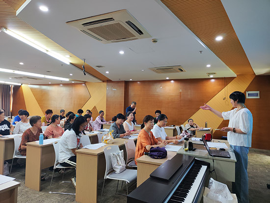 “我一直非常喜愛越劇,只是明德社區(qū)沒有開設(shè)越劇班,一聽說浦沿分院新開了個越劇班,我就迫不及待地報名了。”一位來自明德社區(qū)的阿姨笑著說。“老師,我沒有報上名,但是我非常想來上課,我是上虞的,自小聽著越劇長大,可以給我加個名額嗎?”一位叔叔充滿期待地問老師要個名額,想要加入越劇班。