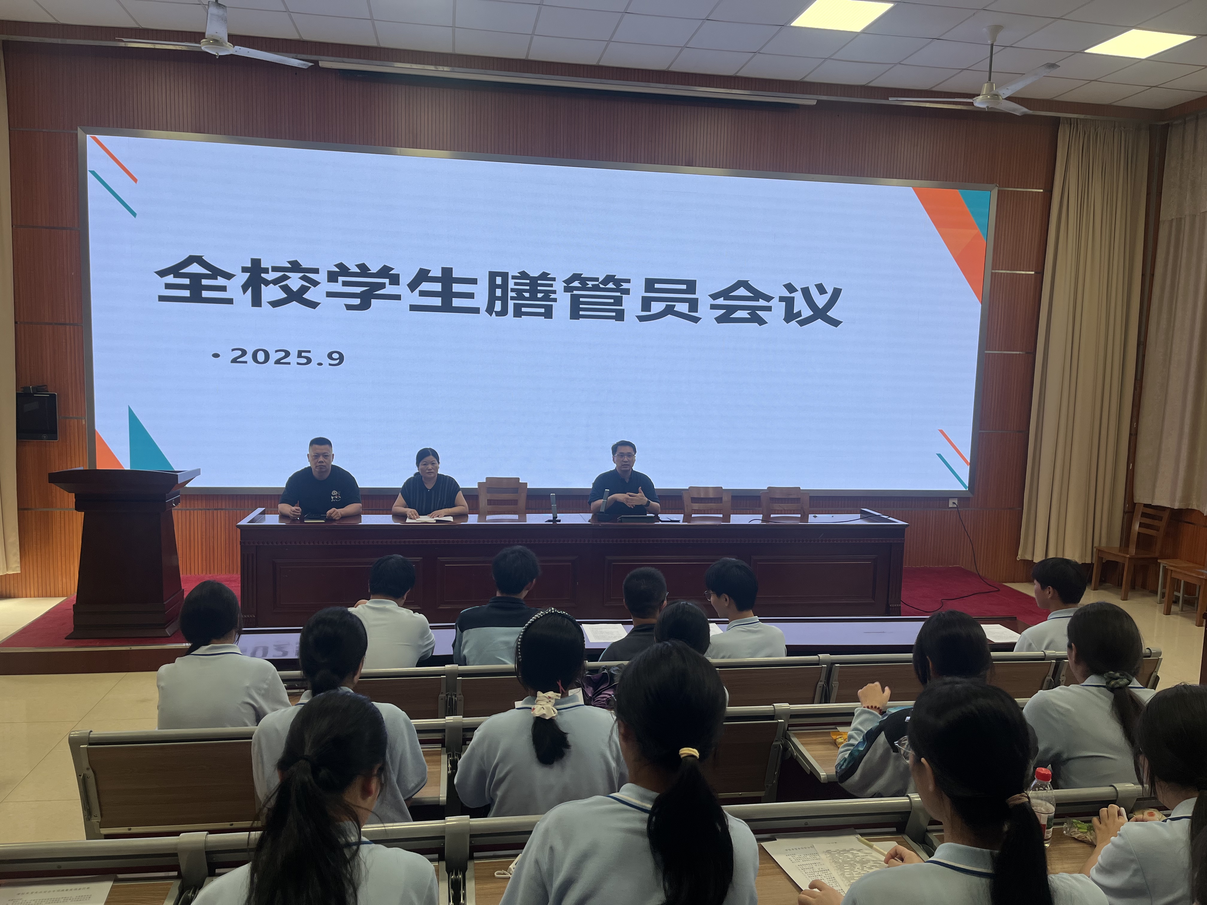9月23日,新學(xué)期學(xué)生膳管員會(huì)議在階梯教室舉行。副校長(zhǎng)董立毅、食堂項(xiàng)目負(fù)責(zé)人以及來自高一至高三年級(jí)的學(xué)生膳管員齊聚一堂,圍繞膳管員職責(zé)履行、食品安全管理等議題展開深入交流。