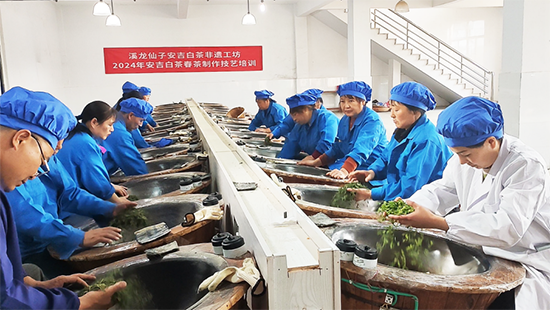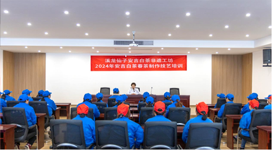 “一人富不是真的富,大家富才是真的富!”這是宋昌美時(shí)刻掛在嘴邊的一句話。2001年4月,宋昌美牽頭成立了溪龍鄉(xiāng)女子茶葉合作社,合作社由最初的8戶茶農(nóng),發(fā)展到40多戶,直至如今的200多戶女性茶農(nóng)。合作社定期開展手工制茶比賽,傳承安吉白茶制作技藝,舉辦專業(yè)培訓(xùn),培養(yǎng)茶產(chǎn)業(yè)專業(yè)人員,截止目前,合作社已培養(yǎng)高級評茶員、茶藝師、茶葉加工工共502人。同時(shí),合作社建立平臺,將生產(chǎn)技術(shù)攻關(guān)、新技術(shù)的應(yīng)用以及新產(chǎn)品研發(fā)和技能人才培養(yǎng)等進(jìn)行有機(jī)結(jié)合,通過課堂培訓(xùn)、實(shí)地教學(xué)等方式示范推廣。為方便合作社成員學(xué)習(xí),她投資興建的白茶服務(wù)中心綜合大樓中,專門開辟了可容納100余人學(xué)習(xí)的遠(yuǎn)程教育播放室。截止目前,合作社已開辦茶園管理講座80余場,全鄉(xiāng)有50%的茶農(nóng),約2000人參與了安吉白茶種植學(xué)習(xí)。在她的帶動下,茶產(chǎn)業(yè)解決了本地和周邊鄉(xiāng)鎮(zhèn)3萬多人次的季節(jié)性就業(yè)問題。全鄉(xiāng)人均收入由6年前的1000多元上升到了1萬多元。