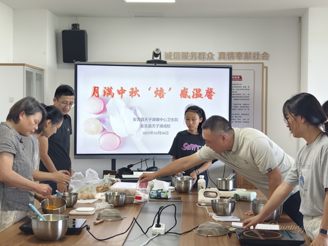 10月6日,中秋佳節(jié),安吉縣社區(qū)教育學院天子湖分院為天子湖鎮(zhèn)衛(wèi)生院醫(yī)護人員舉辦法式馬卡龍烘焙培訓,以甜蜜手藝傳遞節(jié)日祝福,近 20 名醫(yī)護人員在專業(yè)指導下體驗烘焙樂趣。?
