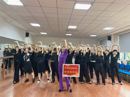 臨近課程結(jié)束時(shí),老師還帶領(lǐng)全體學(xué)員進(jìn)行了成果展示。伴隨著悠揚(yáng)的音樂(lè),學(xué)員們邁著整齊的步伐,舒展著優(yōu)美的身姿,將當(dāng)天所學(xué)的形體舞動(dòng)作完整地呈現(xiàn)出來(lái)。雖然動(dòng)作還略顯稚嫩,但每個(gè)人的臉上都洋溢著自信與喜悅,充分展現(xiàn)了新時(shí)代安吉縣居民積極向上、熱愛(ài)生活的精神風(fēng)貌。